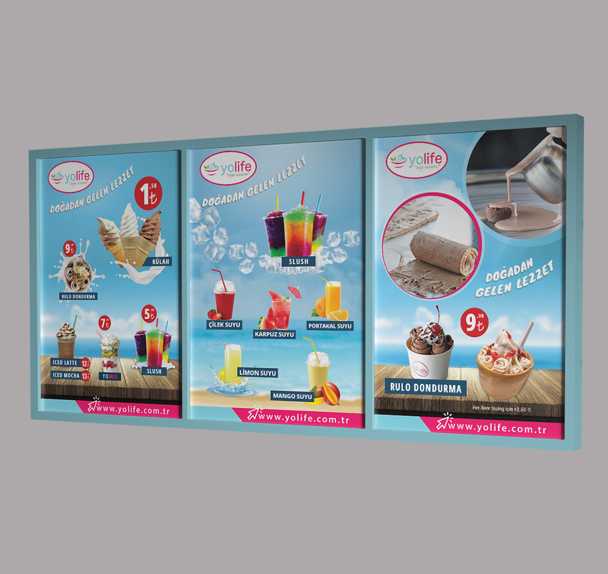 Menu boards and stand design for YoLife
